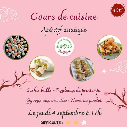 17h – Cours de cuisine « Apéritif asiatique » chez Pau’Ligne