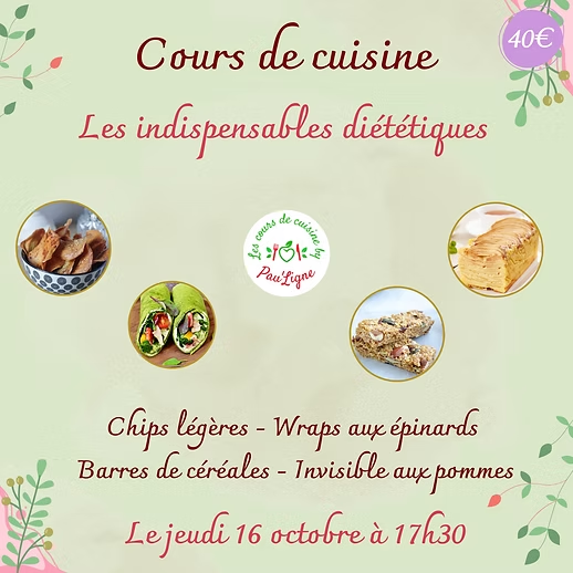 17h30 – Cours de cuisine « Les indispensables diététiques » chez Pau’Ligne