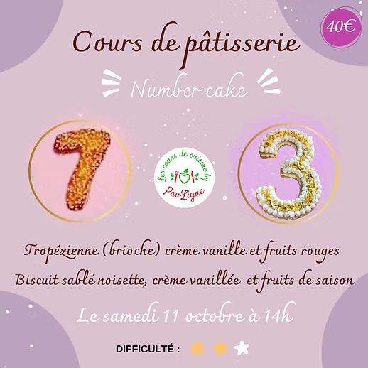 14h – Cours de cuisine « Number Cake » chez Pau’Ligne