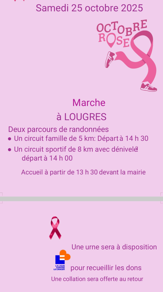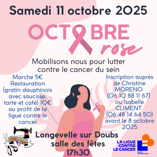 Entrée : 10 € ; l’intégralité des recettes seront reversées à la Ligue Contre le Cancer. Inscription par mail : sarahfit90@gmail.com ou via SMS au 06.18.73.71.66.
