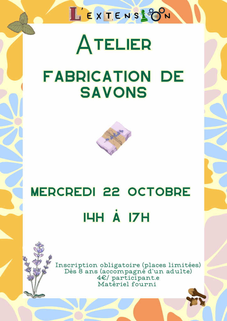 14h – 17h – Atelier Fabrication de savons chez l’Extension