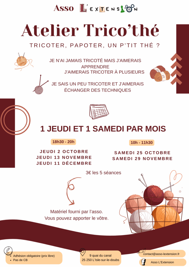 ➩ L’Isle-sur-le-Doubs – Atelier Trico’thé chez l’Extension