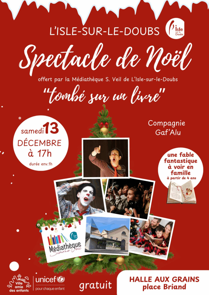 ➩ L’Isle-sur-le-Doubs – Spectacle de noël « tombé sur un livre » à la halle aux grains