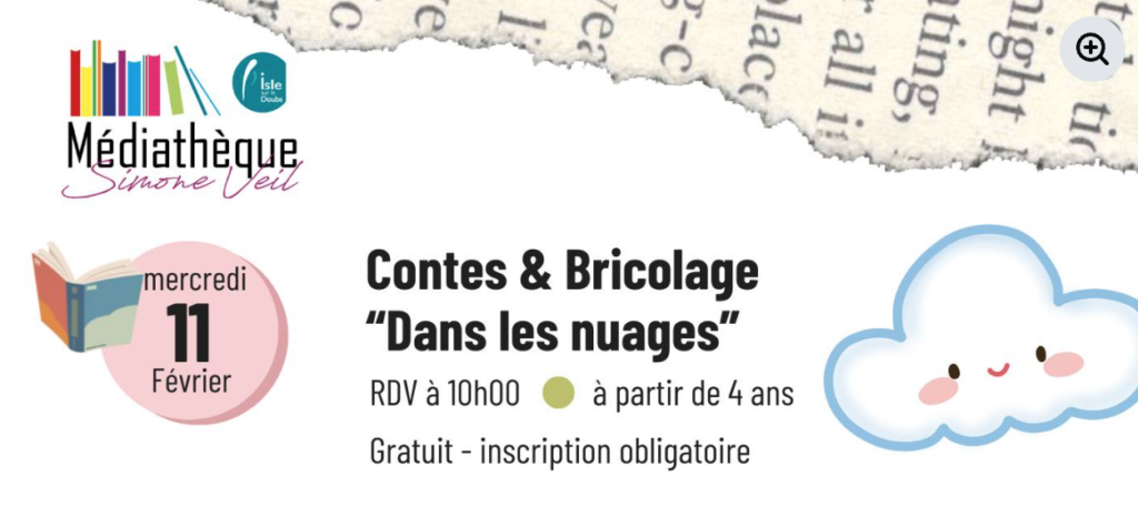 ➩L’Isle-sur-le-Doubs – Contes et bricolages « Dans les nuages » à la médiathèque