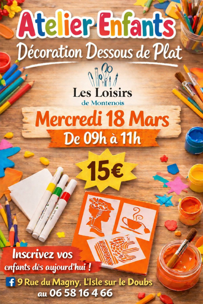 ➩L’Isle-sur-le-Doubs – Atelier enfants « dessous de plat personnalisé » aux Loisirs de Montenois