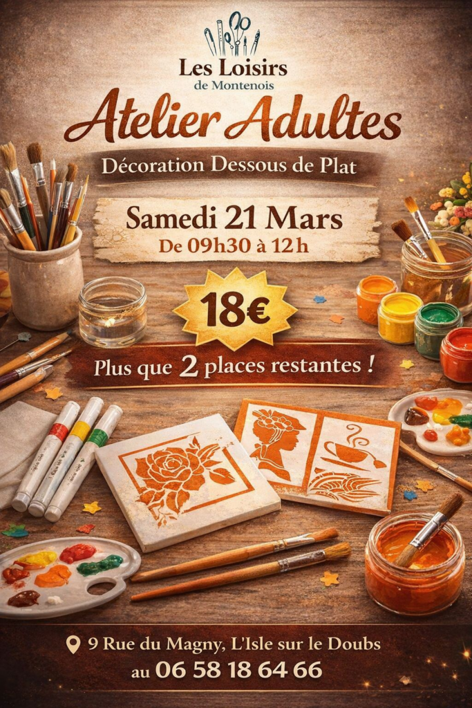 ➩L’Isle-sur-le-Doubs – Atelier Adultes dessous de plats aux Loisirs de Montenois